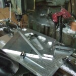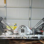 Curt Meyers created the original concept of Counter Revolution after watching many other robots with vertical spinning weapons fail. The design concept behind Counter Revolution is to use two counter rotating weapons to make the robot easier to drive. The symmetrical design with equal spinning mass allows the robot to rotate about it’s center easily. There is still a great deal of torque created from turning each spinning weapon but they cancel out in the center of the bot.